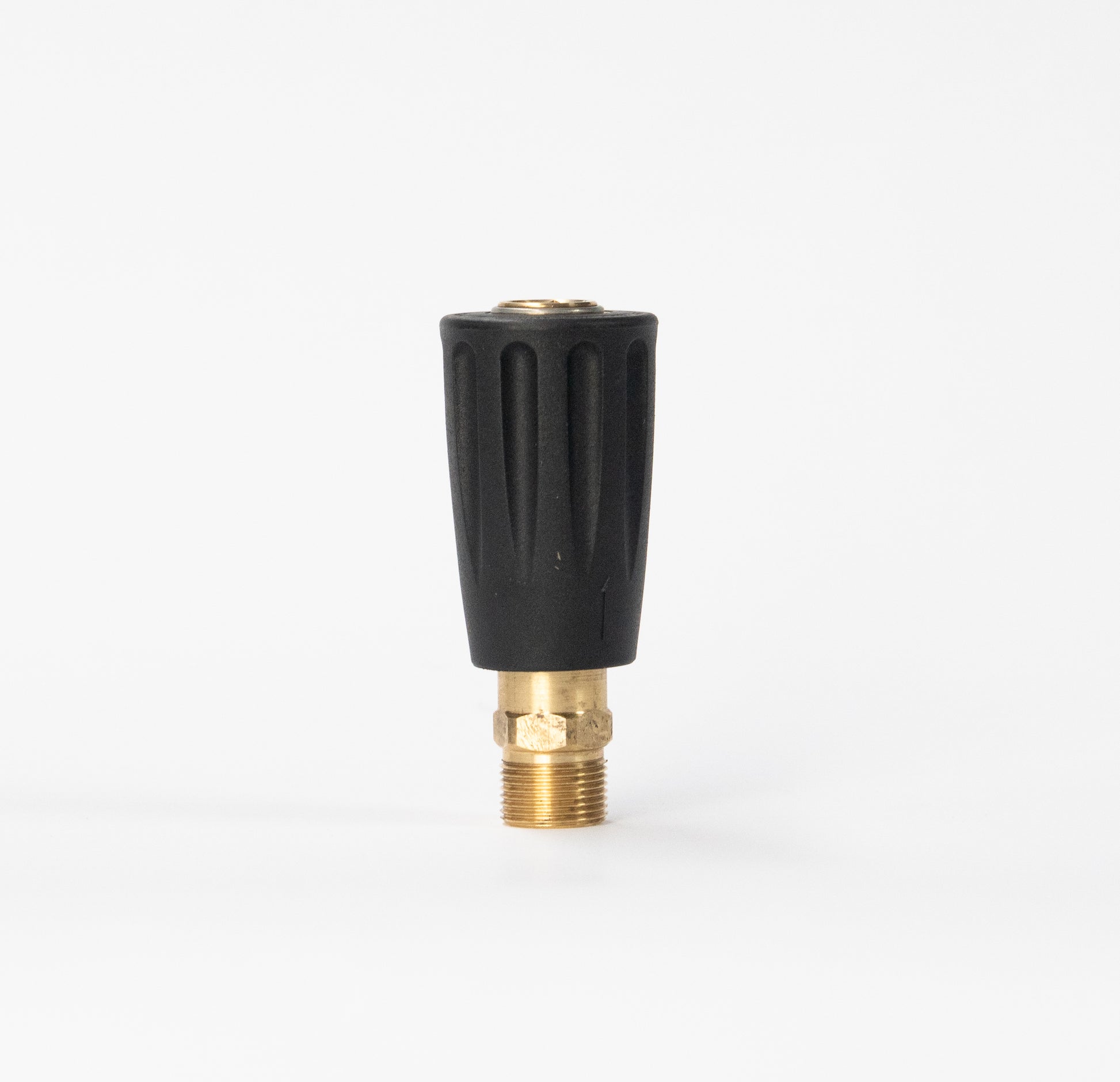 De voorzetkoppeling Kranzle M22,5x1,5 is een stevige en duurzame aansluiting die speciaal ontworpen is om van draaisysteem naar snelwisselsyteem over te gaan.