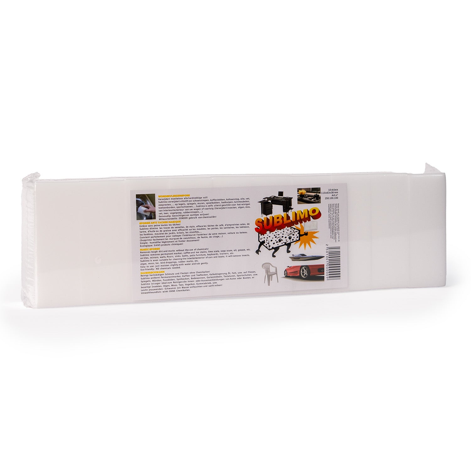 Krachtige melaminespons voor het verwijderen van hardnekkige vlekken en strepen.