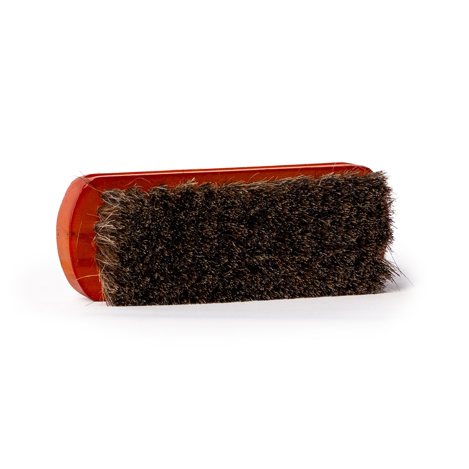 Compacte handborstel met zachte, maar stevige haren voor het reinigen van leder.